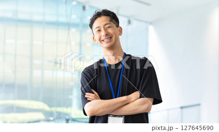 腕組みをする笑顔の男性ビジネスマン