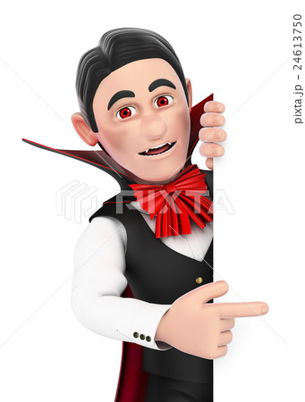 3D Funny monster. Vampire pointing aside.Halloween