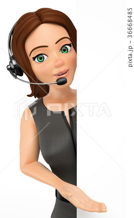 3D Call center operator pointing aside