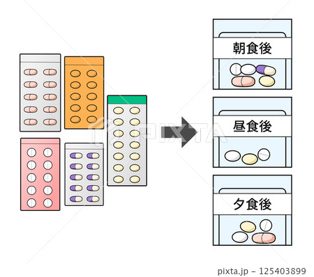 用法ごとに分包された薬のイラスト