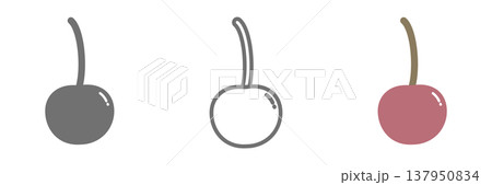 アメリカンチェリーのイラストセット 白黒 線画 カラー