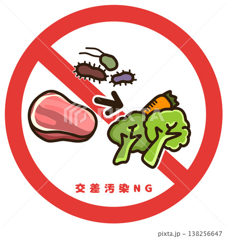 交差汚染防止アイコン 生肉と野菜の接触禁止 食品衛生対策イラスト