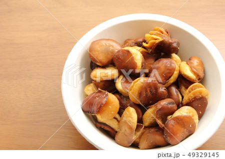 パルプモールド容器(使い捨て食器)に入れられたいかり豆。