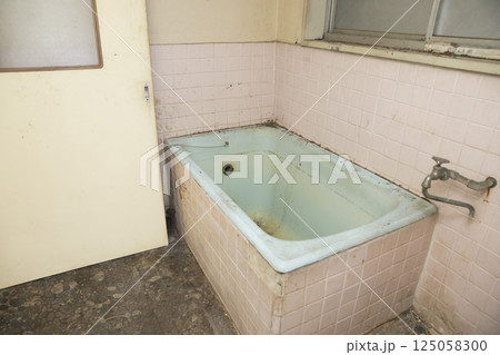 あれ草がぼうぼうに生えた公園と老朽化した遊具の写真素材