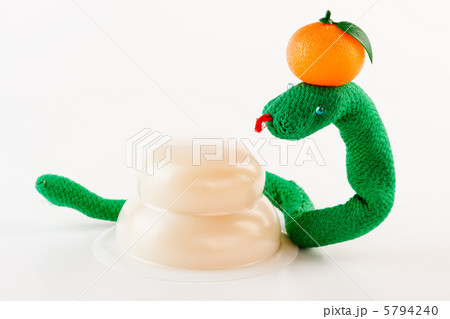 正月素材_ 蛇のペアとお供え餅