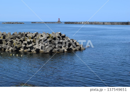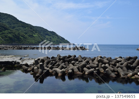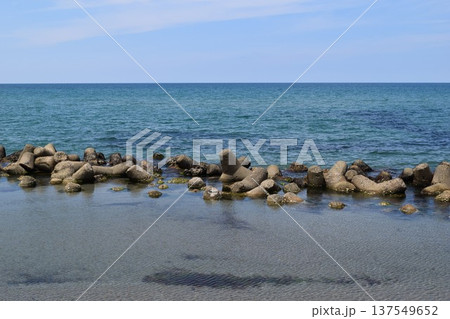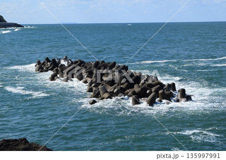 日本海の荒波と消波ブロック