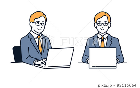 ノートパソコンを操作するミドル男性のベクターイラスト素材