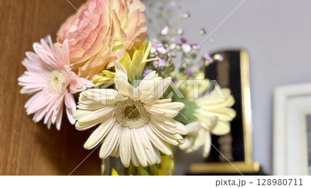 遺影の前に供えた花
