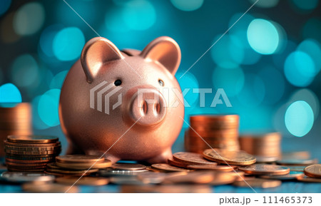 AI-generated content. piggy bank money coins saving in futuristic background , financial investment and budget concept, . generative ai