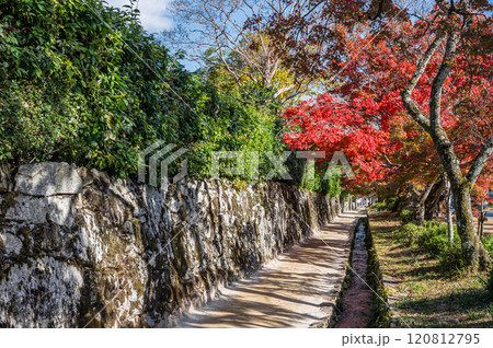 大津市坂本の風景 石畳の道を覆う新緑の木々
