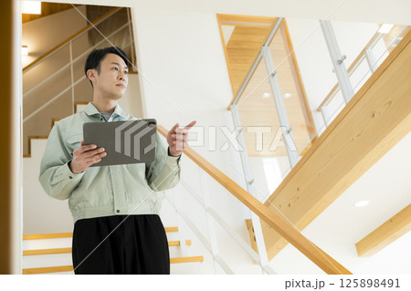 住宅の引き渡し アフターメンテナンスをする作業着の男性