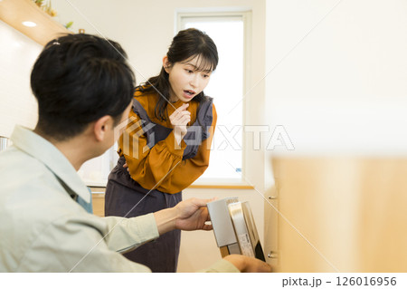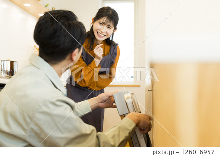 食洗機の修理にきた男性作業員