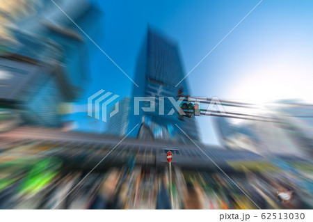 日本の東京都市景観 新型コロナウイルス・侵入禁止・赤信号…見えない影=渋谷駅前・宮益坂下の交差点