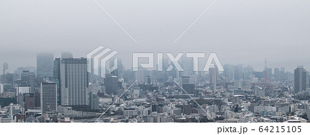 日本の東京都市景観 新型コロナ“都市封鎖”。“柵”(高圧電線)の奥に東京都心=14日・宣言から一週間