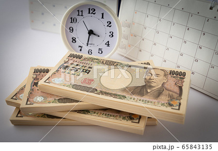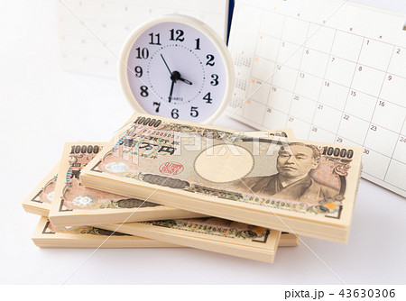 時計とお金とカレンダー 時間 時は金なり 紙幣 運用 長期投資