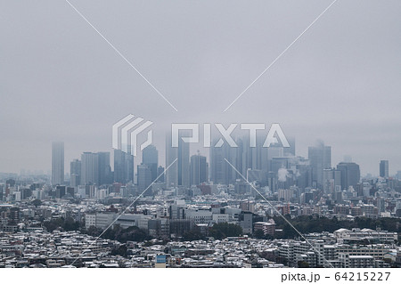 日本の東京都市景観 新型肺炎 凍てつく都心(新宿副都心)=29日(感染爆発、…32年ぶりの積雪)