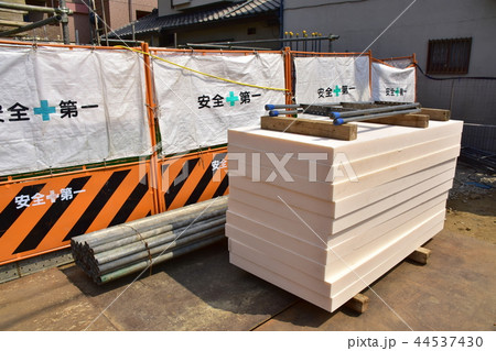 建築現場に積まれたポリスチレンフォーム断熱材