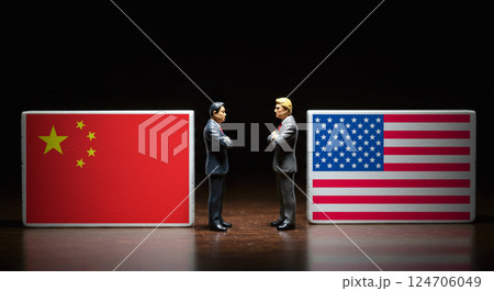 貿易摩擦で対立する米国と中国を描いたミニチュアフィギュア