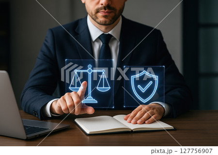 Business liability insurance concept with legal protection and risk management in professional office setting