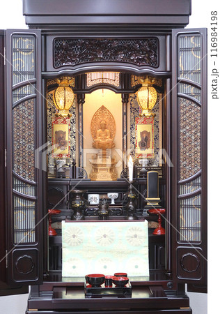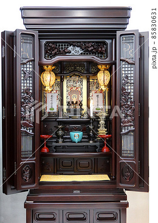 唐木仏壇に飾られた禅宗の仏具 先祖供養の終活イメージ1