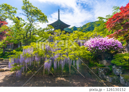 前山寺 藤の花の名所 「未完成の完成の塔」の三重塔