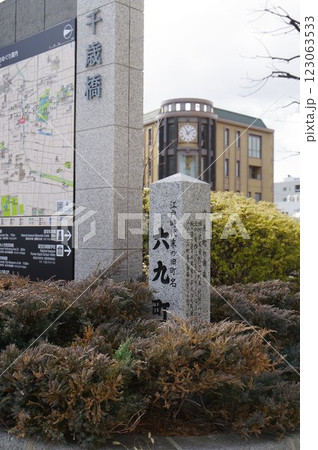 信州 松本市市街地 旧町名標識 「六九町(ろっくまち)」近傍の光景