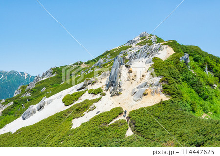 【登山素材】夏の燕岳の稜線と湧き上がる雲【長野県】