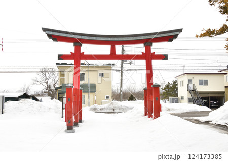 冬の北海道北斗市で七重浜海津見神社境内の風景を撮影