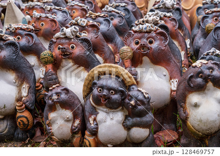滋賀県甲賀市信楽町の狸の焼き物を撮影