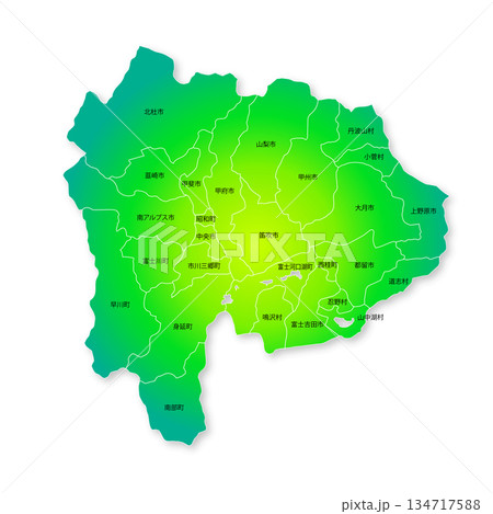 山梨県と市町村の白地図