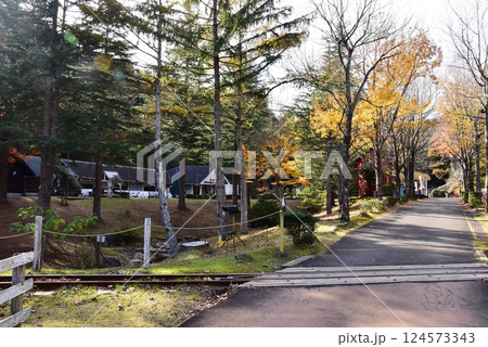 伊豆市 修善寺虹の郷のカナダ村へ続く園路と紅葉