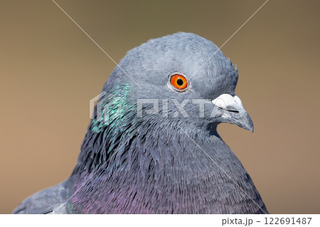 埼玉県川越市池辺 川越水上公園 修景池(ボート池)のカワラバト河原鳩(ドバト土鳩)クローズアップ