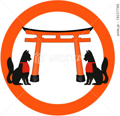 鳥居と対のお稲荷さん 神社【手描き水彩画】白バック コピースペースあり