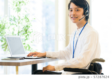 車椅子 ビジネス 男性 デスクワーク オペレーター