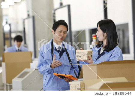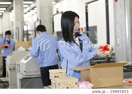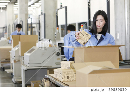流通ビジネスイメージ 倉庫 工場 製造 運送 運輸 物流 梱包 検品 梱包 アソート