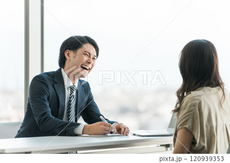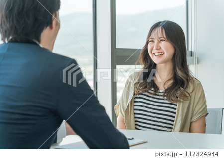 面談・面接を行うビジネスマンと面接を受ける女性