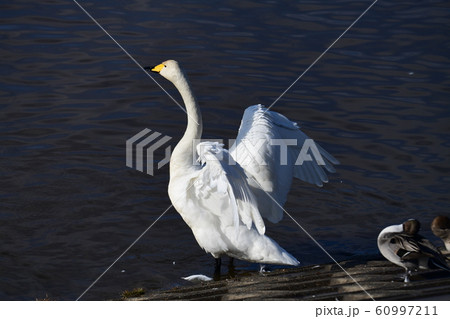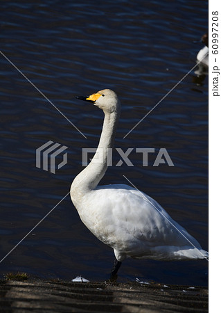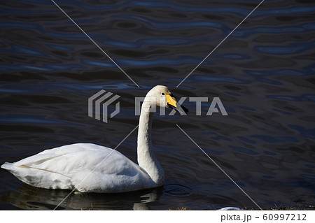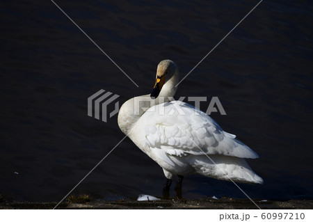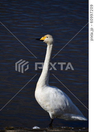 黒いしるしは、彼か彼女の個性、世界のどこかで君を見る。オオハクチョウ成鳥。黄色い嘴に黒い特徴的模様