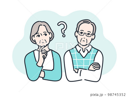 疑問に思う老夫婦のシンプルなベクターイラスト素材