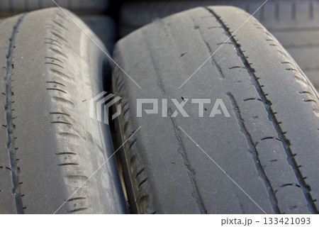 摩耗 スリップサイン ひび割れた 廃棄タイヤの山