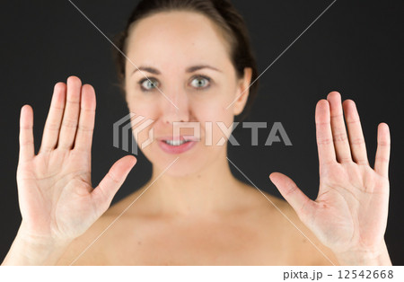 Woman hand frame face stop Hand Focus
