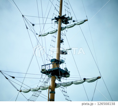 箱根芦ノ湖に停泊する海賊船マスト部分