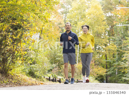 ランニングするミドル夫婦