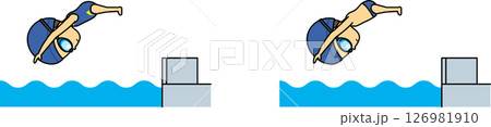 飛び込む小学生男女