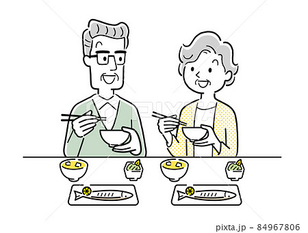 食事する夫婦(料理・朝食・自炊・和食・健康・カップル)