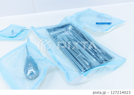 A Collection of Sterile Medical Instruments Carefully Arranged in Packaging on a Clean Surface for Surgical Use in a Medical Environment