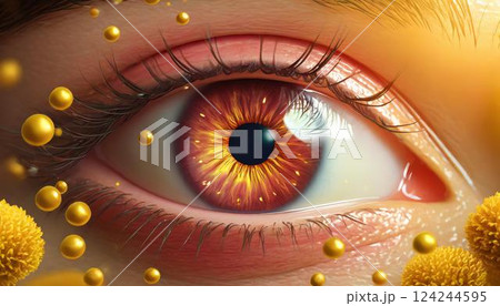 目の周りの空気中を飛散する花粉などのアレルゲンをイメージした3Dイラスト 花粉症、アレルギー