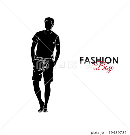 Fashionable guy. Fashion. Silhouette of a guy. The guy in bermudas and a T-shirt