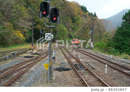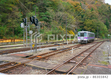 備後落合駅に庄原方面から入線する備後落合終着の芸備線列車 広島県庄原市