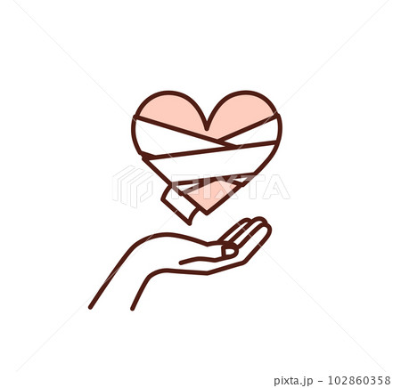 心を治療する。傷ついた心を癒す。ハートのベクターイラスト素材。