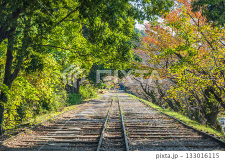 京都 蹴上 インクライン(レールと台車)(秋)